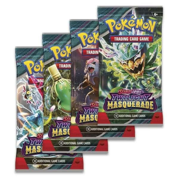 Welcome to the land of Kitakami, where people and Pokémon live harmoniously with nature. Folktales abound, but not all is as it seems... Uncover the mystery of the masked Legendary Pokémon Ogerpon, appearing as four fearsome types of Tera Pokémon ex, and team up with more newly discovered Pokémon, like Bloodmoon Ursaluna ex and Sinistcha ex. Growing in power, Greninja, Dragapult, and Magcargo dazzle as Tera Pokémon ex, and more ACE SPEC cards round out the festivities in the Pokémon TCG: Scarlet & Violet—Twilight Masquerade expansion!